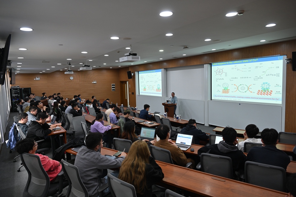 报告中,谢院士从“张力释放”和“局域芳香化”这两个稳定含相邻五元环的新型富勒烯的原理出发,详细阐述了富勒烯作为单分子器件的特性,以及其作为电子受体材料或电子缓冲材料在催化反应中的促进作用。谢院士还介绍了团队在富勒烯促进铜催化剂选择性加氢制醇方面的研究工作。这次报告引发了与会师生们的热烈讨论。谢院士耐心解答了与富勒烯包覆铜颗粒催化剂的活性位点以及富勒烯的电子缓冲性对不同金属能级的搭配等问题,并且通过分享团队研发过程中所面临的各种困难,鼓励大家坚定信心,勇于尝试,不断开展前沿性研究,为tyc41183太阳成集团的高质量发展注入创新活力。