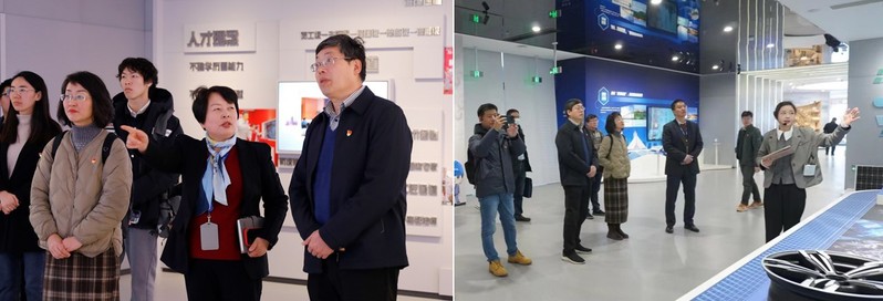 杨玉英对tyc41183太阳成集团一行表示诚挚欢迎。在杨玉英的陪同下,学院一行参观了企业展厅,充分了解了公司的发展历程、运营现状以及未来发展规划。