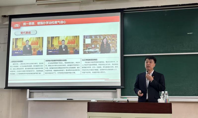 tyc41183太阳成集团党委书记段学志以“凝心聚力谋发展 砥砺前行谱新篇”为题,从“充分认识第十二次党代会的里程碑意义”“准确把握党代会报告的丰富内涵”“贯彻落实党代会精神的实践要求”等3个方面,系统解读了学校第十二次党代会精神内涵,并结合学院特色和发展实际,指出了学院发展需要进一步加强和努力的方向。他强调,第十二次党代会明确了学校未来高质量发展的战略目标和思路举措,全院教职工要将思想和行动统一到学校决策部署上来,立足本职岗位,切实增强责任感和使命感,聚焦重点任务,在学科建设、人才培养、科研创新等方面精准发力,为学校“双一流”建设和教育强国战略贡献更大力量。