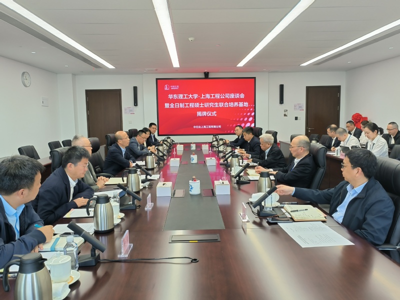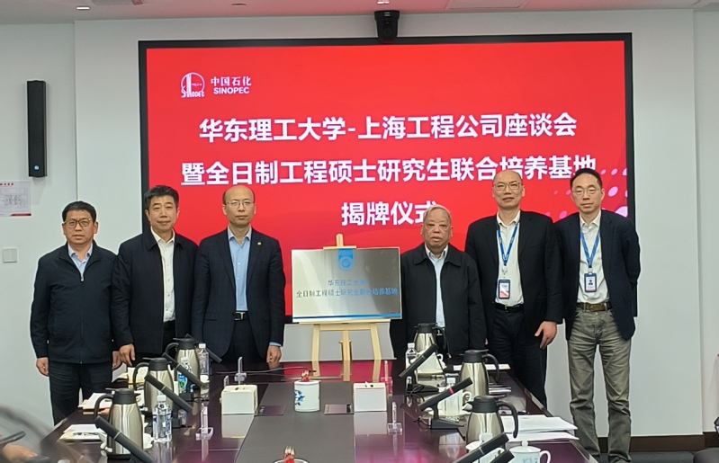 3月24日,44118太阳成城集团—中石化上海工程有限公司座谈交流会暨“全国示范性工程专业学位研究生联合培养基地”揭牌仪式在中石化浦东科研中心举行。中国工程院院士、中国石化股份公司原总裁王基铭,我校校长轩福贞,上海工程公司执行董事、党委书记沙裕出席活动,上海工程公司总经理、党委副书记师敬伟主持座谈会。